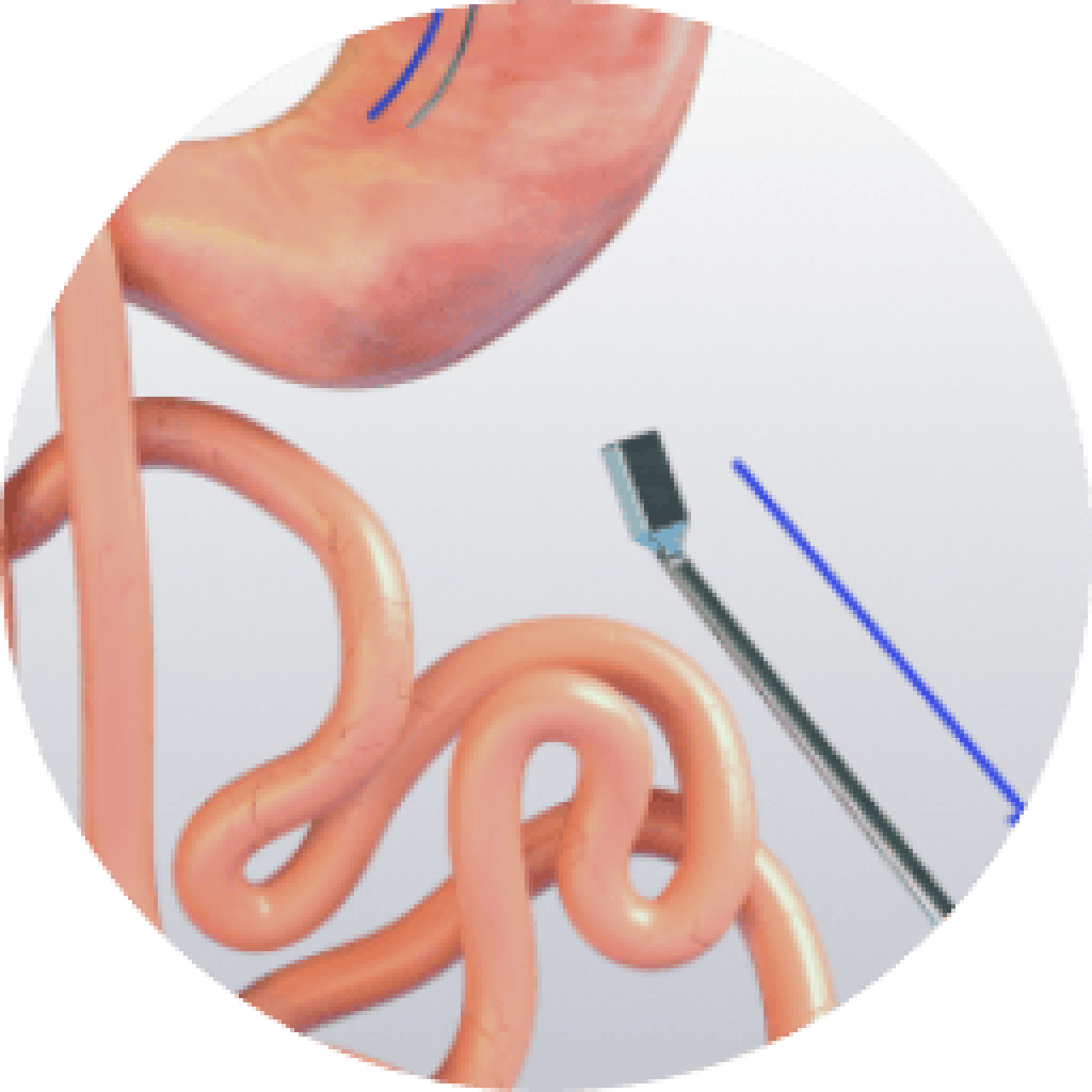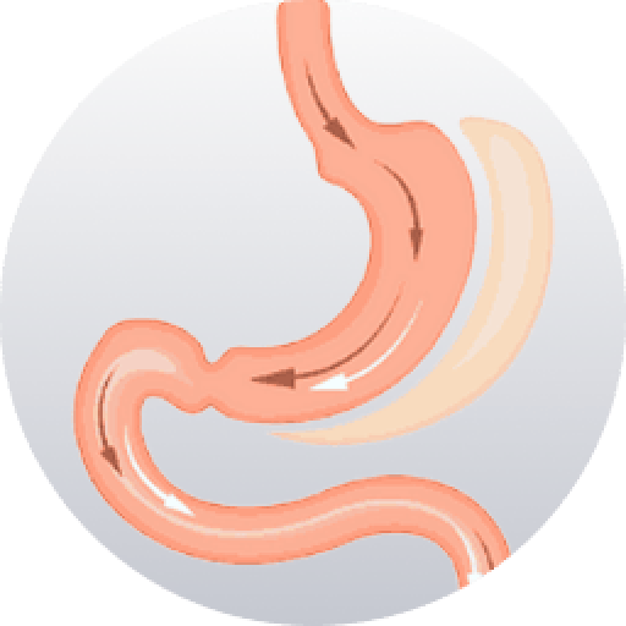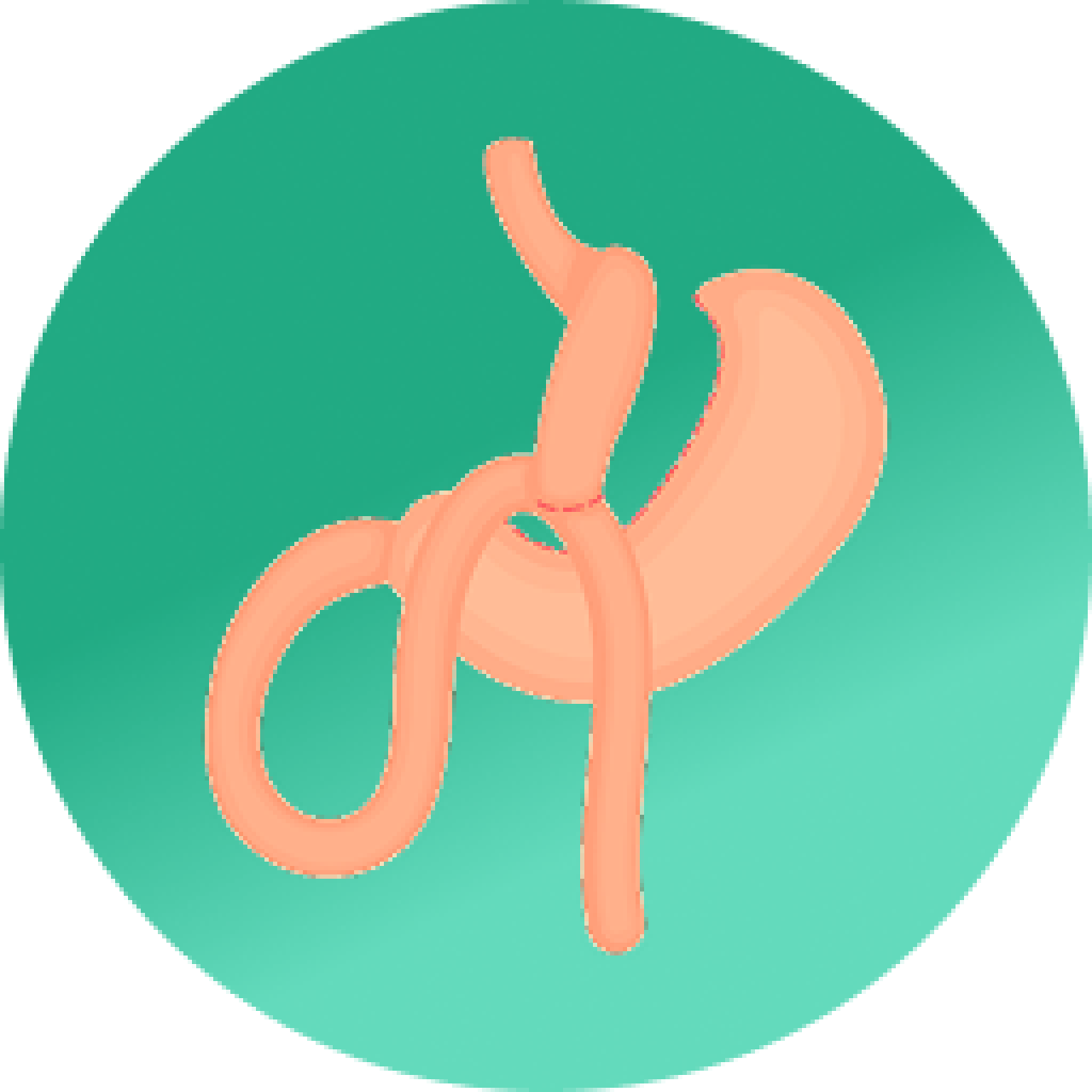 A laparoscopic Roux-en-Y gastric bypass consists of creating a small pouch from the stomach (constraining food intake), which is connected directly to the small intestine.